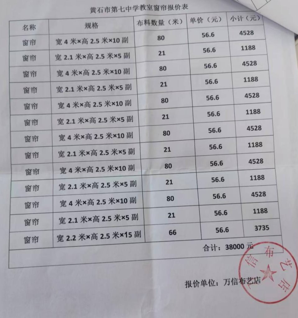 黄石七中2025年学校教室窗帘更新项目遴选结果公示