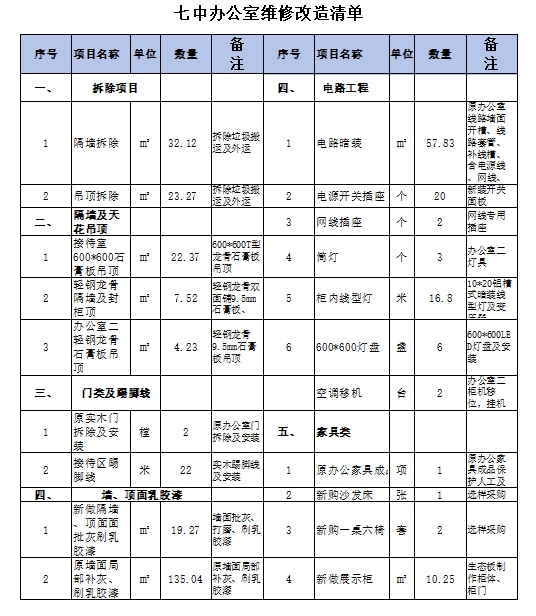 1、项目名称:黄石七中2025年学校厚积楼办公室维修工程