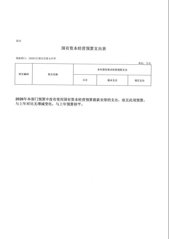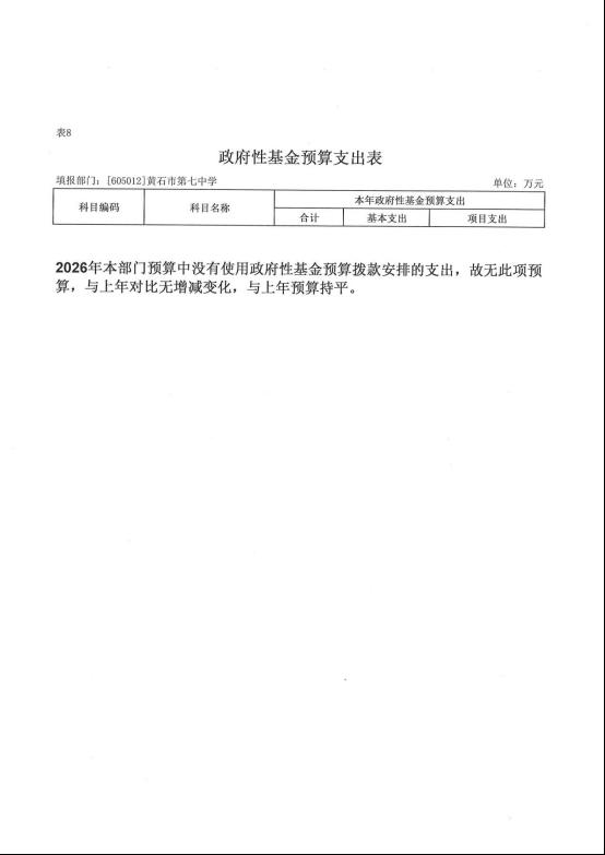 2026年度黄石市第七中学部门预算公开情况说明