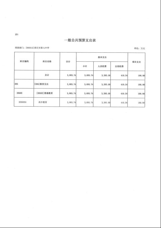 (1)教育支出(类)普通教育(款)高中教育(项)2026年预算数为 3883.74 万元,比上年预算增加(减少) 201.37万元,增长 5.47 %。主要原因是工资提标,对应的工资支出、社保支出增加。